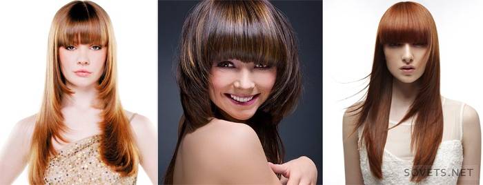 En muchos casos, la cascada se realiza con flequillo. Las explosiones largas harán invisibles las impercepciones faciales. Este tipo de corte de pelo es ideal para niñas con una cara alargada. Para una cascada con flequillo, los estilistas aconsejan usar la coloración.