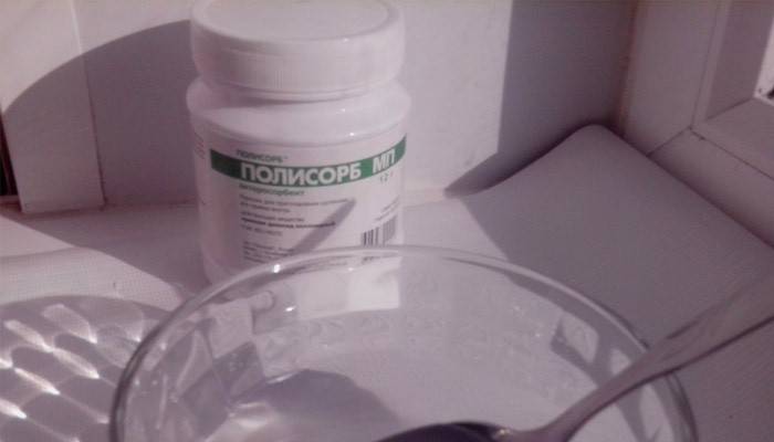 - Tome 1 g de Polysorb en polvo, vierta una cucharada de agua.
