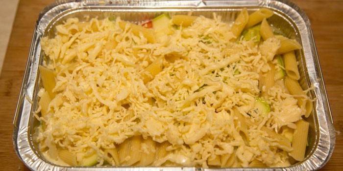 Para preservar el contenido bajo en calorías, la receta no proporciona relleno, pero incluso sin ella, la cazuela de pasta con pollo y verduras resultará muy tierna y no estará seca. Queso bajo en grasa recomendado: Adyghe, parmesano.