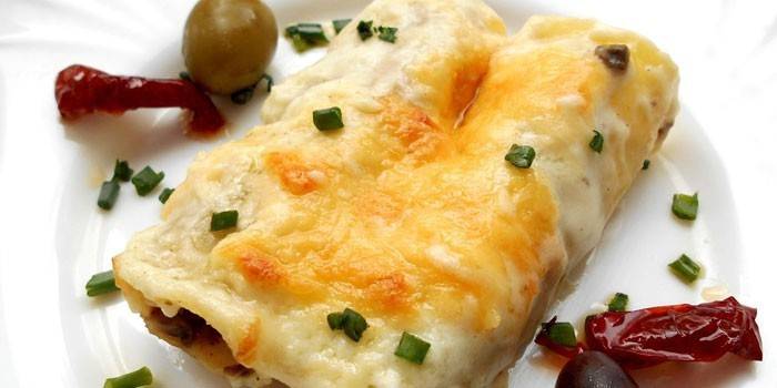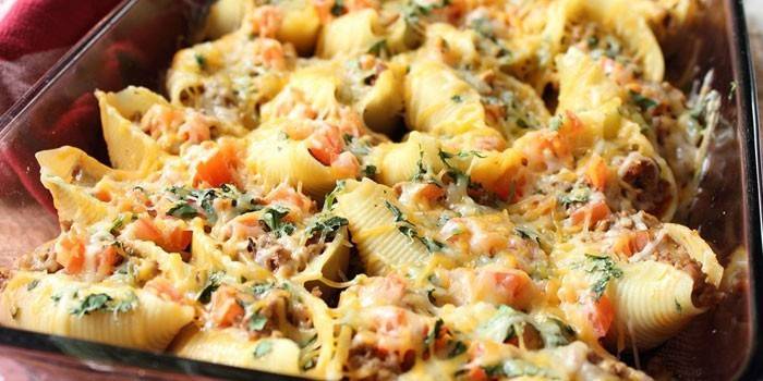 Puede tomar otras formas huecas, pero son más difíciles de llenar. Para cocinar pasta rellena de carne picada y queso en el horno, se utilizan tubos anchos de canelones.Puede tomar otras formas huecas, pero son más difíciles de llenar. Cualquier carne, pescado, incluso algunos mariscos son adecuados para el relleno. Después de hornear, el plato se puede dorar quitando el papel aluminio y elevando la temperatura del horno.