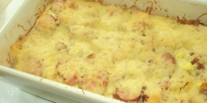 - Vierta la masa de huevo y leche, cocine durante media hora. La temperatura del horno es de 180 grados.