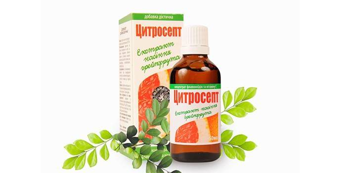Antibiótico natural obtido a partir das sementes, casca e tecido conjuntivo de toranja - Citrosept. Devido à sua composição, o suplemento dietético não causa efeitos colaterais, não afeta o fígado e os rins. Citrosept - instruções de uso, o efeito da droga em vírus e provocadores de inflamação da pele, contra-indicações, análogos mais adiante no artigo. Esta informação não pode ser usada para automedicação, todas as consultas são feitas por um médico.