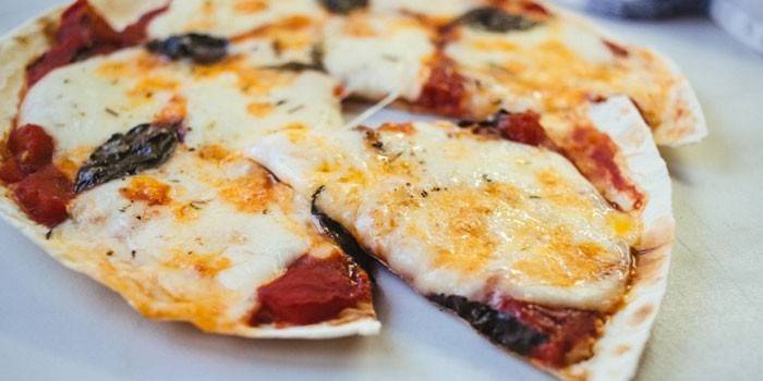 Com uma folha muito fina da base, você obtém pizza no pão pita no microondas, para a qual é melhor tomar um bolo redondo e fresco. Para o recheio, é bom levar uma mistura de produtos à base de carne - frango cozido ou frito, carnes defumadas, fatias de legumes e molho. Como preparar um petisco saboroso ajudará a entender a receita com a foto, descrita abaixo. A aparência espetacular da pizza não deixará ninguém indiferente.