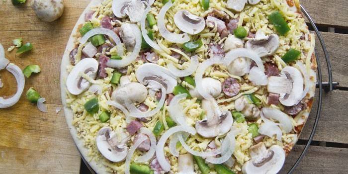 Cozinhar pizza no microondas em uma base pronta é ainda mais rápido, que pode ser facilmente comprado em qualquer loja. Resta complementar o recheio com deliciosos produtos, assar instantaneamente usando um fogão e servir quente à mesa. As porções voam para longe instantaneamente, porque um lanche saudável terá um sabor incrivelmente rico, aroma agradável e aparência de dar água na boca.