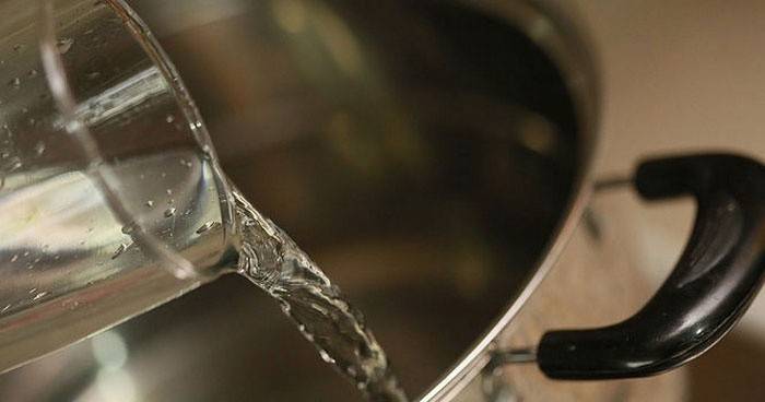 - Vezmite veľký hrniec, naplňte ho vodou a privarte.Aj keď je vaša hlava malá, odporúča sa ju uvariť vo veľkom množstve tekutiny.