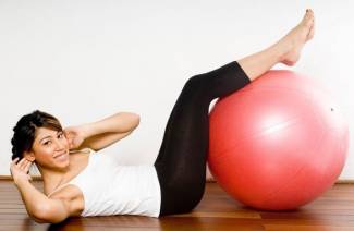 - drepy - urobte ich pri stene. Nohy sú od seba vzdialené od seba, päty a chrbát sú pritlačené k stene. Hladké drep, posuňte chrbát pozdĺž steny. Aby ste to skomplikovali, môžete si za chrbát nahradiť telocvičňu. Squat dole, snaží sa udržať loptu. Vykonajte 3-4 opakovania 15-krát.