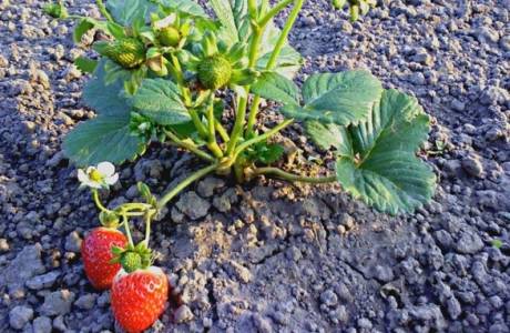 Na jar sa pridá dusičnan amónny (15 g / m2. M), superfosfát (30 g / m2. M), draselná soľ (10 g / m2. M). K opeľovaniu dochádza v období máj - jún - júl (v závislosti od regiónu), súčasne sa objavujú vaječníky. Pridajte dusík, hnojivá potaše, humus, popol. Aby sa zvýšil počet kvetenstvo, aby sa získali aromatické ovocie, striekajú sa kríky roztokom kyseliny boritej (1 lyžička na 10 l vody). Vyžaduje sa pravidelné uvoľňovanie pôdy. Odstráňte burinu, prebytočné listy, fúzy, škodcov. Pred zrením ovocia medzi kríkmi položte trávu, slamu, piliny, ihly (konáre borovíc).