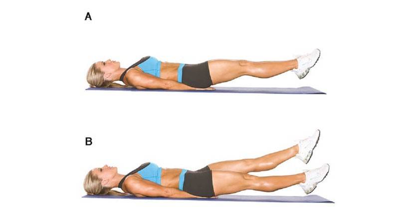 - zdvíhanie nôh z brucho - 2 sady 15 - 30 opakovaní;